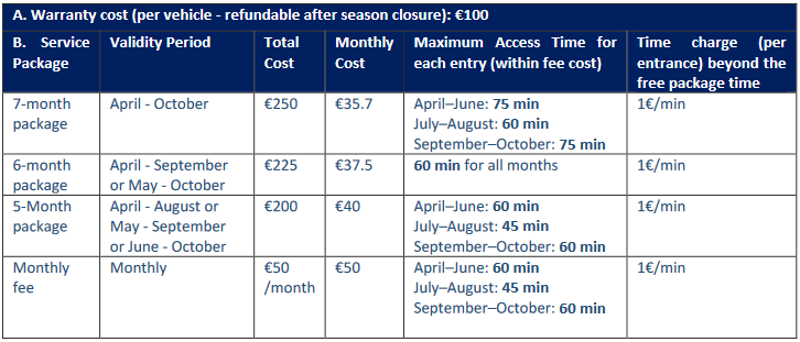 Note 1: Αccess to the Controlled Access Area will now be carried out exclusively through the license plate recognition of the incoming vehicle.